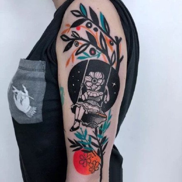 18张school风格的彩色纹身图片