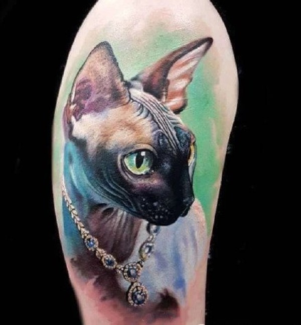 斯芬克斯猫主题的一组猫纹身图片