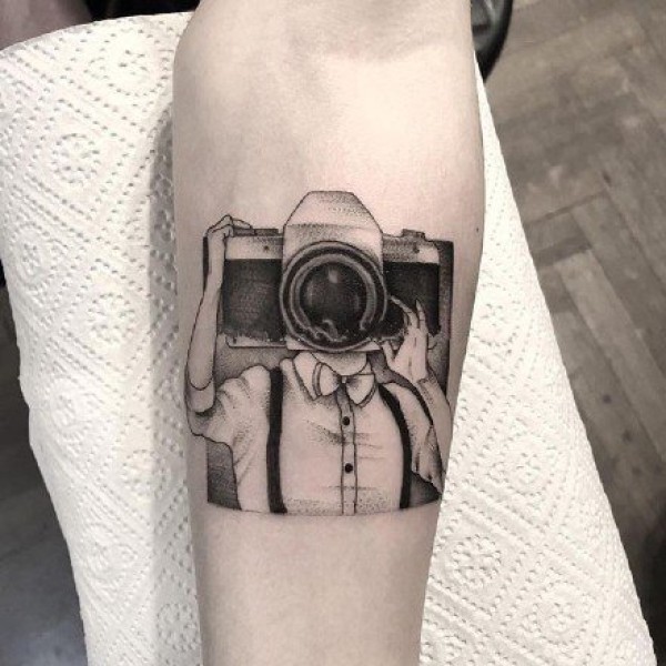 2相机纹身:摄影师很喜欢的相机纹身图案9张
