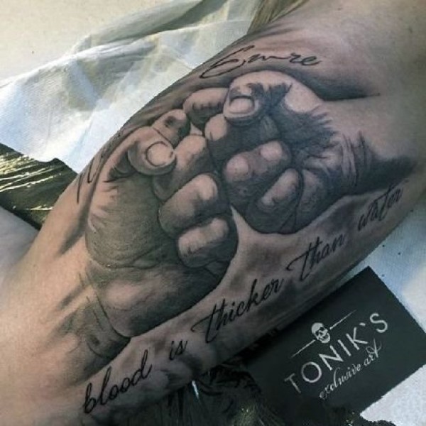 牵手纹身 象征父爱母爱的大手牵小手纹身作品