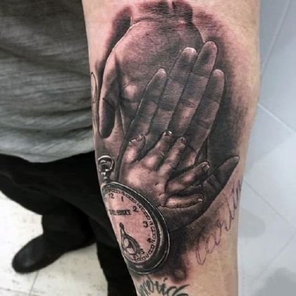 牵手纹身 象征父爱母爱的大手牵小手纹身作品