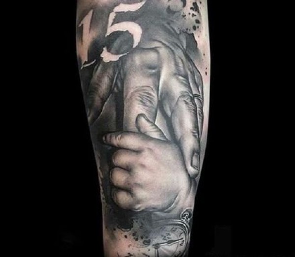 牵手纹身 象征父爱母爱的大手牵小手纹身作品