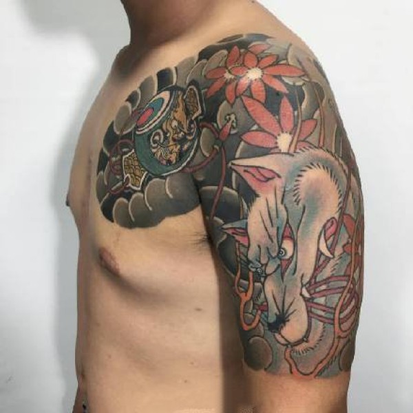 半甲纹身图片半甲观音神兽唐狮纹身图片纹身_半甲纹身图案大全_纹身图吧