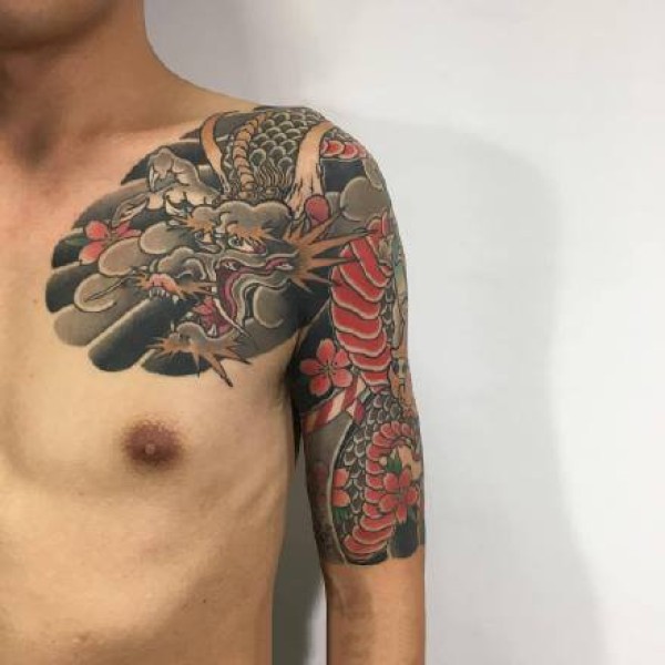 日式手彫刺青作品—半甲龙很感谢客户认可手彫刺青,手彫是日本纹身的手工雕刻技术,时间可以追溯到日本17世纪的江户时代。19世纪,手彫技术被日本黑帮挪用,被用作入会仪式,象征着从此就是江湖中人。在日式传统