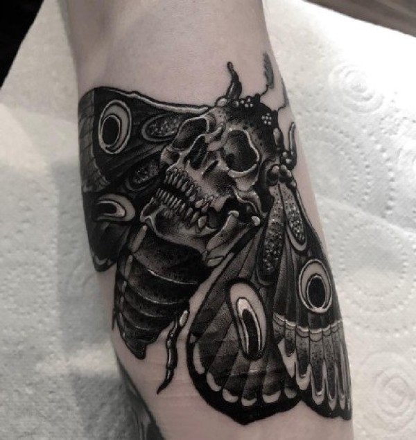 手臂纹身图片 男生手臂上黑色的飞蛾纹身图片