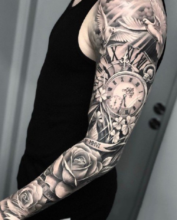 小臂钟表纹身 18款欧美风格包臂钟表纹身图案