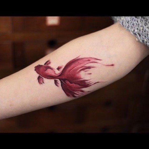 金鱼纹身 漂亮的9张唯美彩色小金鱼纹身图案