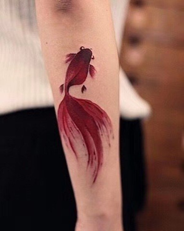 金鱼纹身 漂亮的9张唯美彩色小金鱼纹身图案