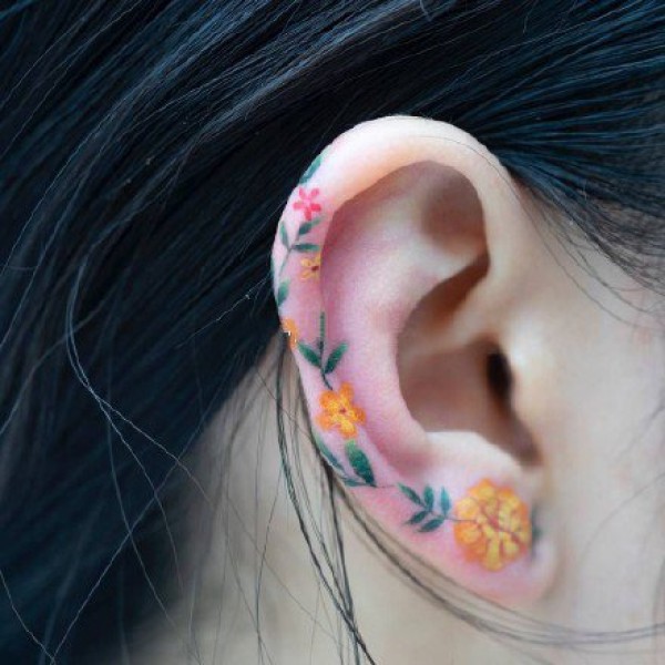 耳朵纹身--9张耳朵周边可以纹的小清新纹身图案