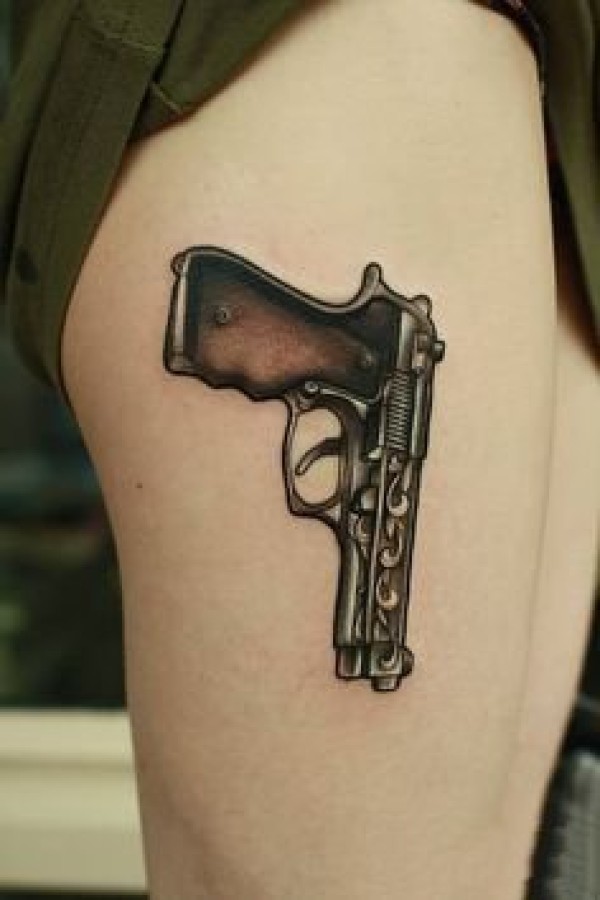 小手枪纹身 小黑色的9张手枪纹身图案欣赏