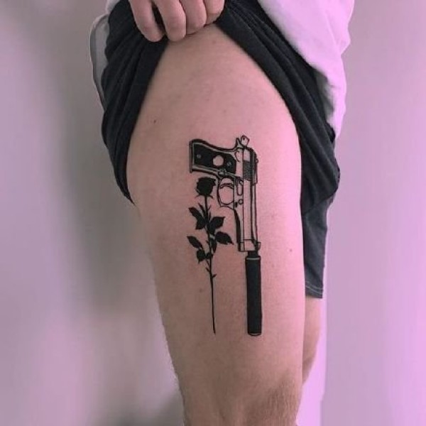 小手枪纹身 小黑色的9张手枪纹身图案欣赏