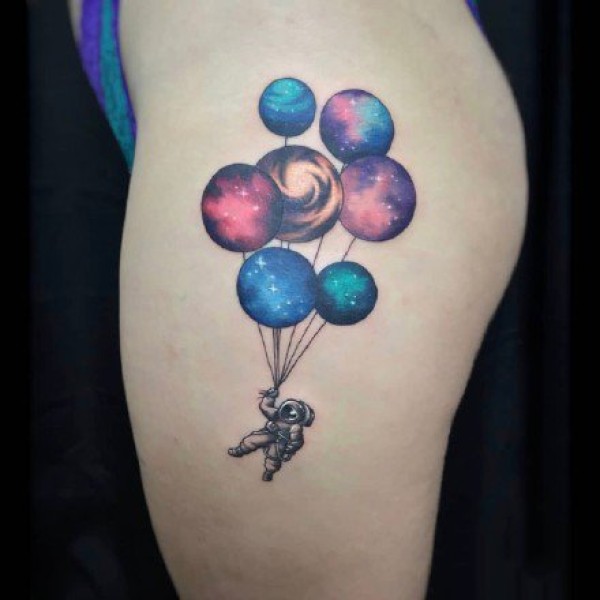 一组炫彩色星空星球宇宙相关的纹身图案作品