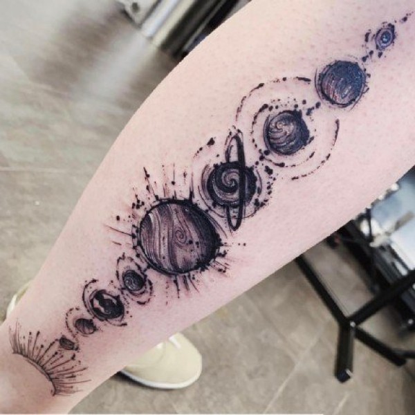 9张纯黑色胳膊上的个性星球主题的纹身图片