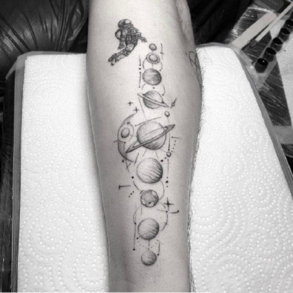 9张纯黑色胳膊上的个性星球主题的纹身图片