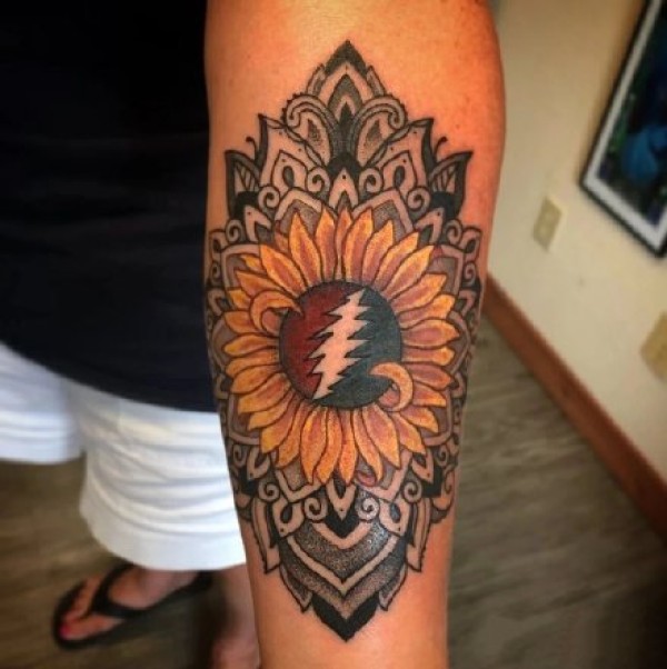 向日葵纹身图案 绽放中的或黑灰或彩绘的向日葵纹身图案