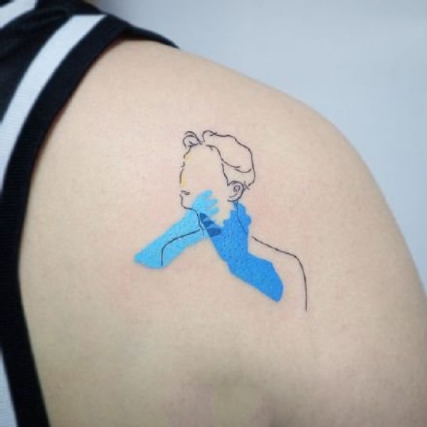 人脸线条纹身:简约抽象风格的一组线条人脸纹身图案