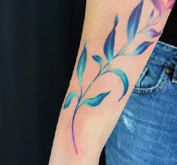 叶子纹身 9张漂亮植物叶子彩色纹身图案