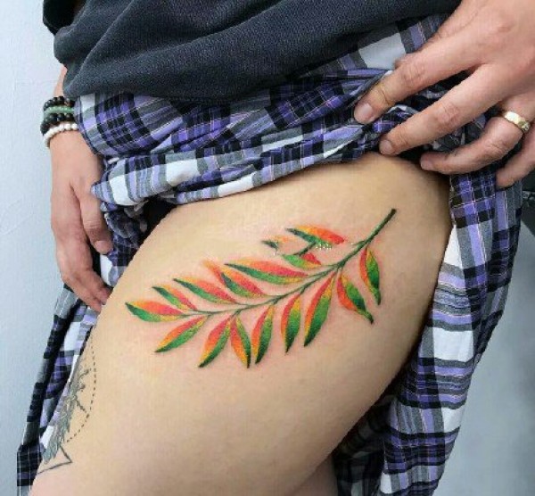 叶子纹身 9张漂亮植物叶子彩色纹身图案