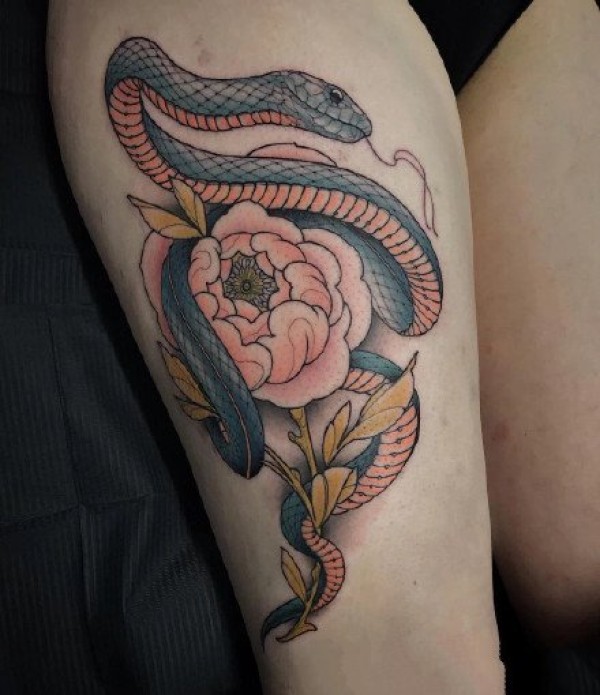 性感美女大腿部细腻漂亮的蛇纹身图片