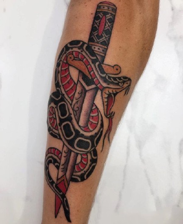 性感美女大腿部细腻漂亮的蛇纹身图片