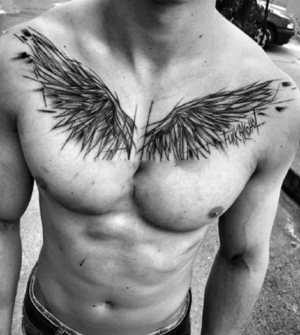 霸气翅膀:适合男性的一组霸气翅膀纹身图案9张