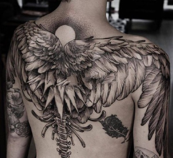 男性翅膀纹身 9款适合男性的成对翅膀纹身图案