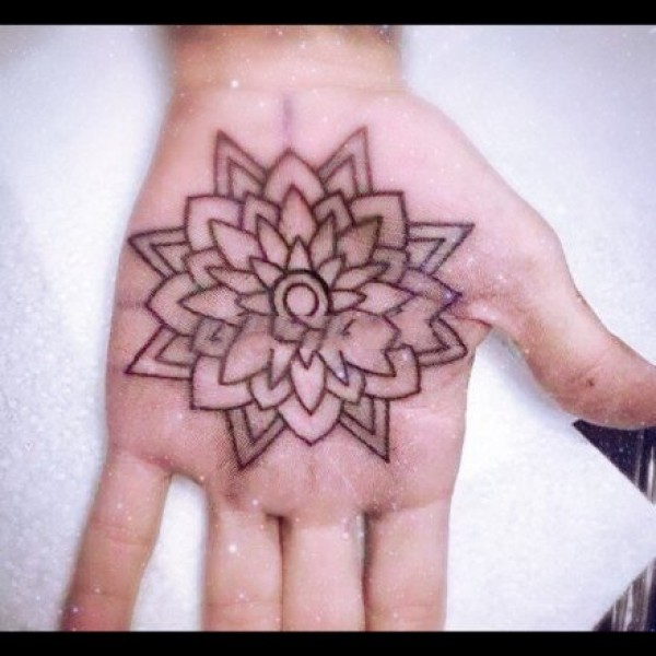 手掌纹身--一组好看的纹在手掌心里的纹身图案作品