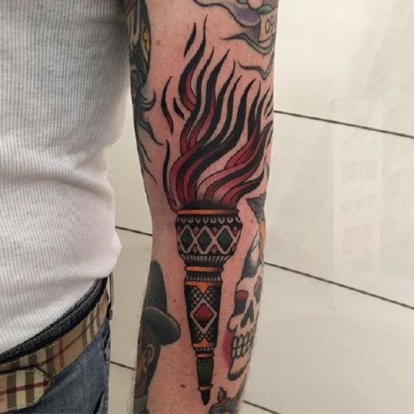 小臂火炬彩色欧美纹身图案