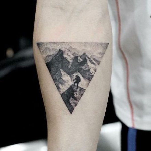 彩色风景纹身--一组几何图形+彩色的小风景纹身图案欣赏