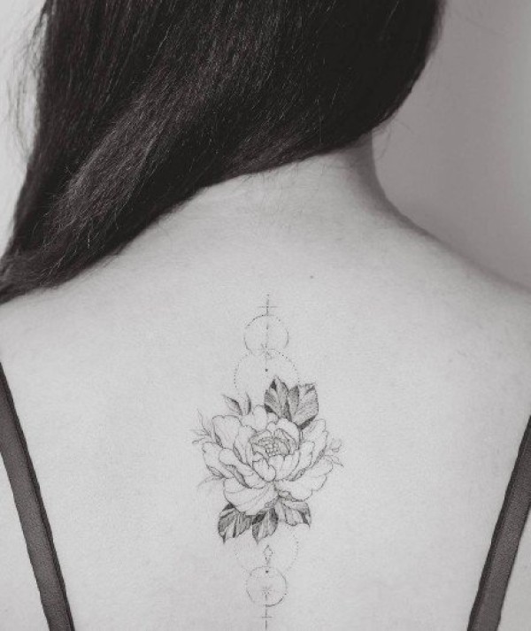 肩花纹身--一组适合肩部的黑灰肩花纹身图案欣赏