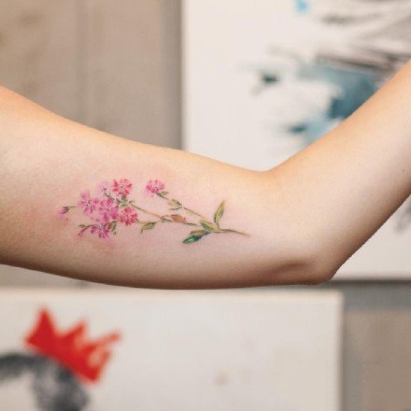 纹在手臂胳膊上的黑灰素花花卉纹身图案欣赏