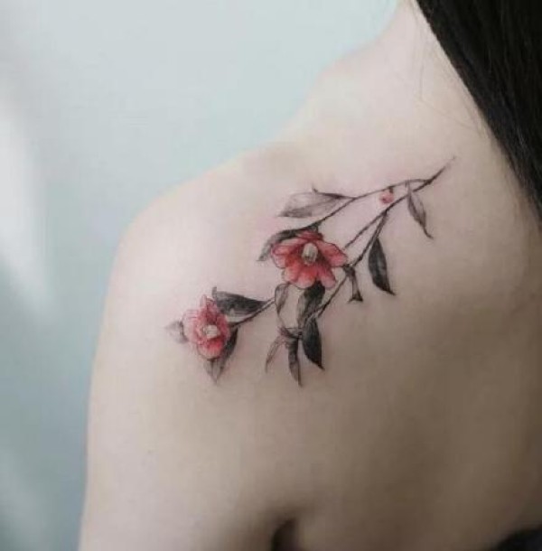 肩花纹身--一组适合肩部的黑灰肩花纹身图案欣赏