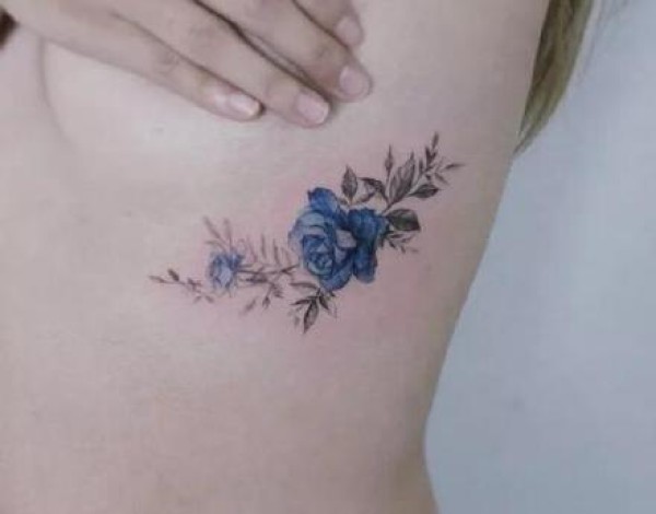 性感花朵纹身--女性大腿侧部性感的花朵纹身