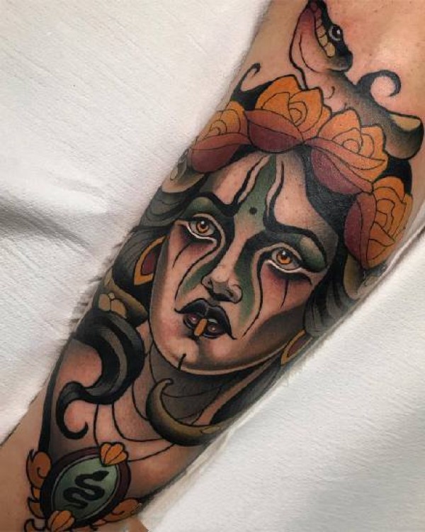 newschool风格的一组欧美包臂女郎纹身图案