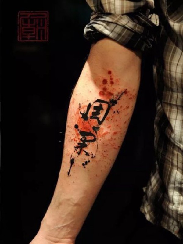 泼墨汉字纹身图案