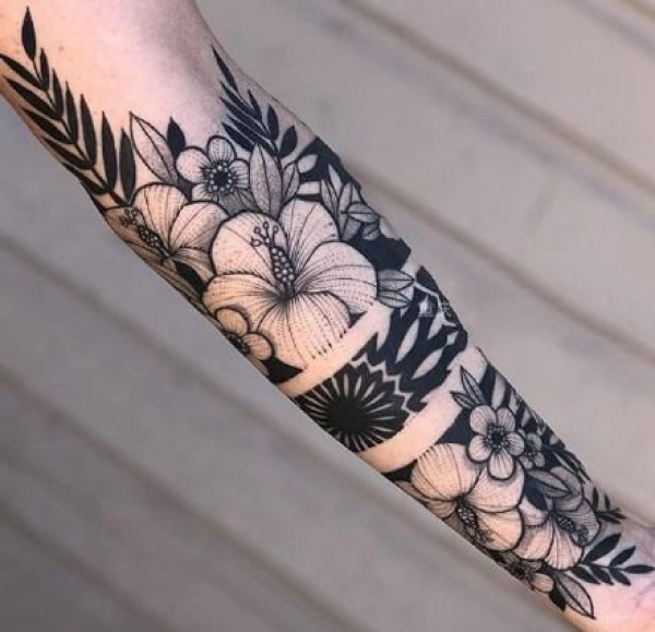 好看的一组黑灰色包小臂梵花纹身图案