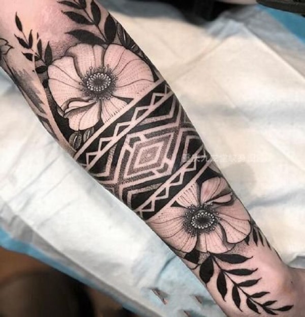 好看的一组黑灰色包小臂梵花纹身图案