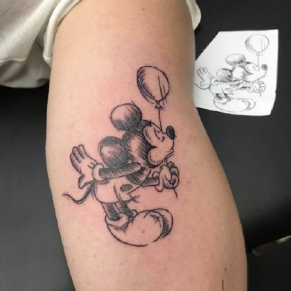 米老鼠头纹身 男生大臂上创意的米老鼠头纹身图片