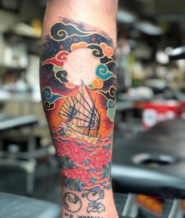 日式浮世绘腾云祥云主题的一组小纹身图片