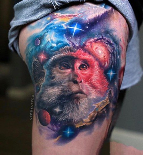 炫彩梦幻星空的潮流纹身图案