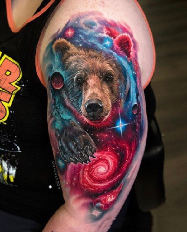炫彩梦幻星空的潮流纹身图案
