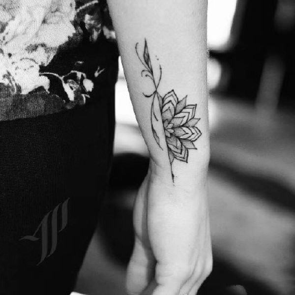 9张小清新的黑灰色小臂手腕梵花纹身图案