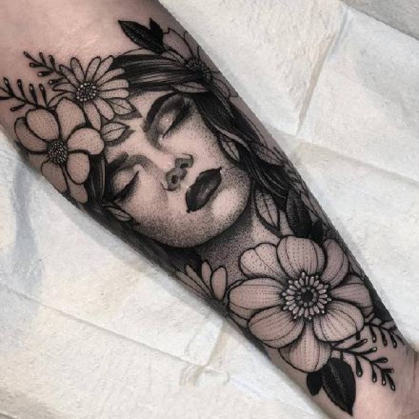手臂女郎纹身:9款包臂的黑灰女郎纹身作品