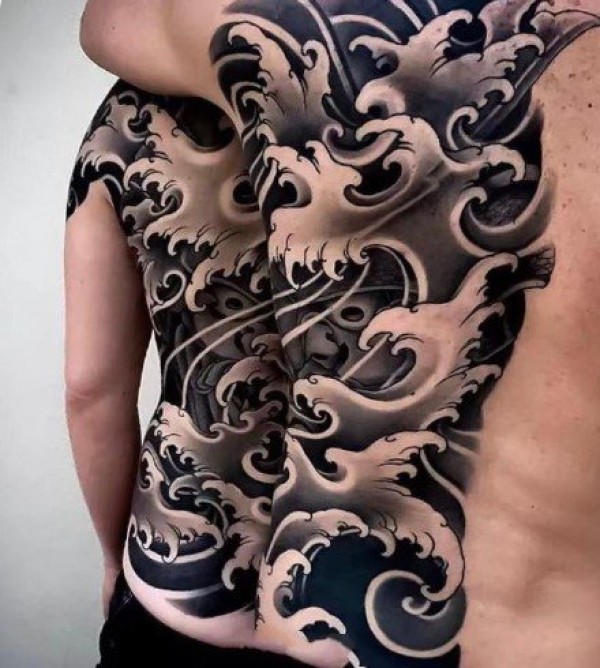 纹身浪花 汹涌澎湃的浪花纹身图案