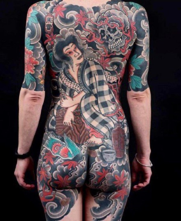 新传统风格的9张男性黑灰大满背纹身图案图片