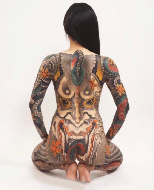 新传统风格的9张男性黑灰大满背纹身图案图片
