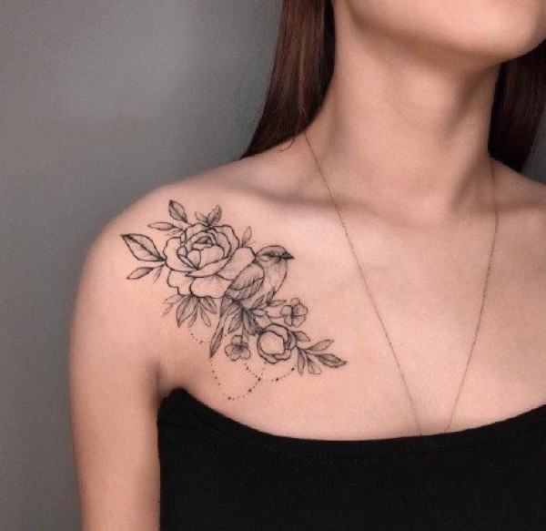女孩子锁骨肩部的素花纹身图欣赏