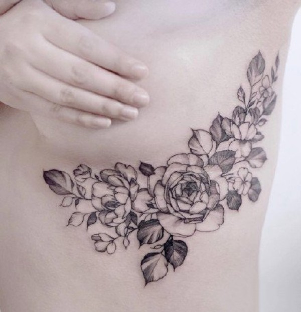 大臂素花纹身 9款女士的大臂黑灰花朵植物纹身图案