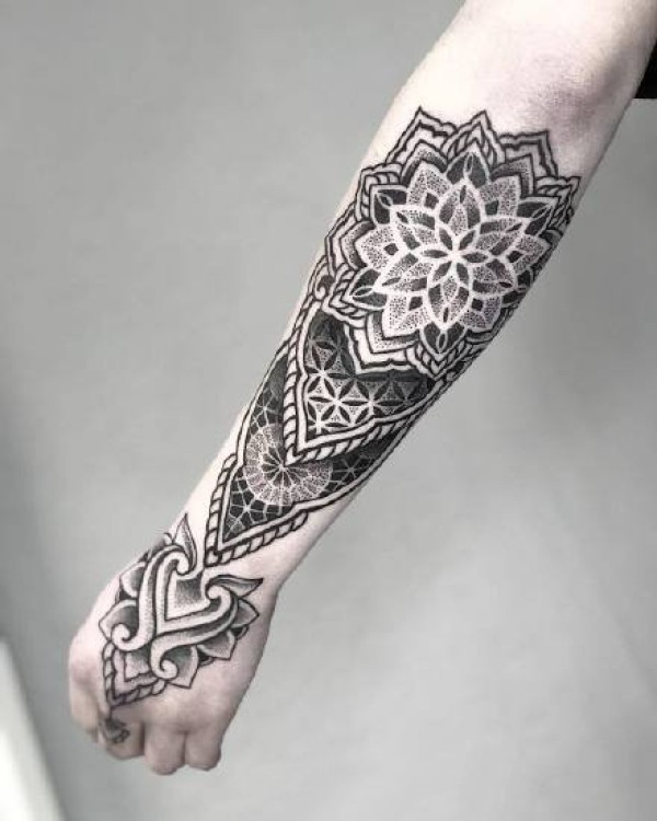 小臂梵花纹身:小臂位置的9张点刺梵花纹身图案