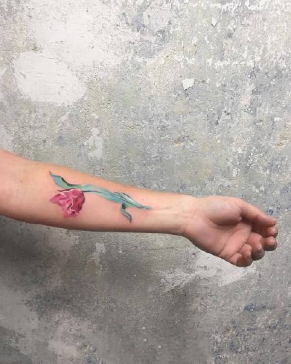小臂花卉纹身:小臂胳膊上很漂亮的花朵纹身图片